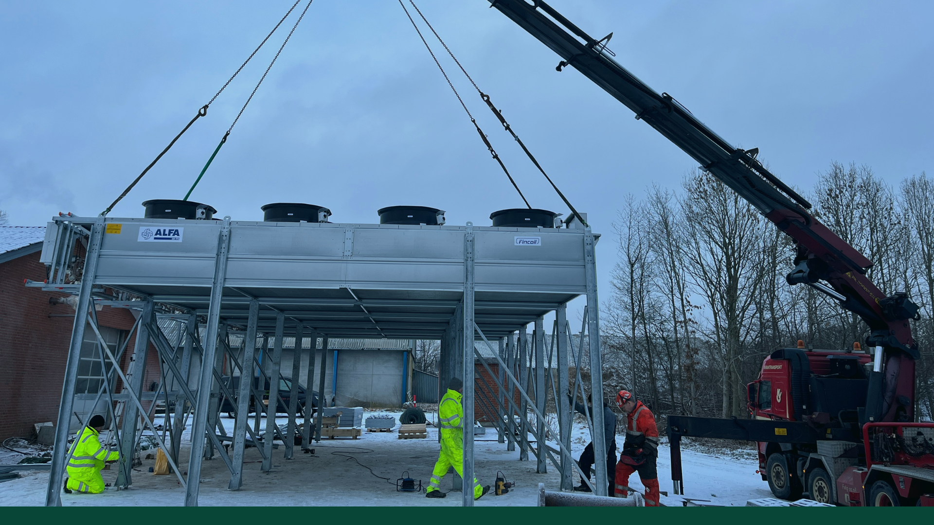 Julen har ikke sat arbejdet på pause i Nordenskov. Tværtimod. I løbet af de sidste uger er varmepumperne blevet leveret og placeret i Helle Energis bygning.